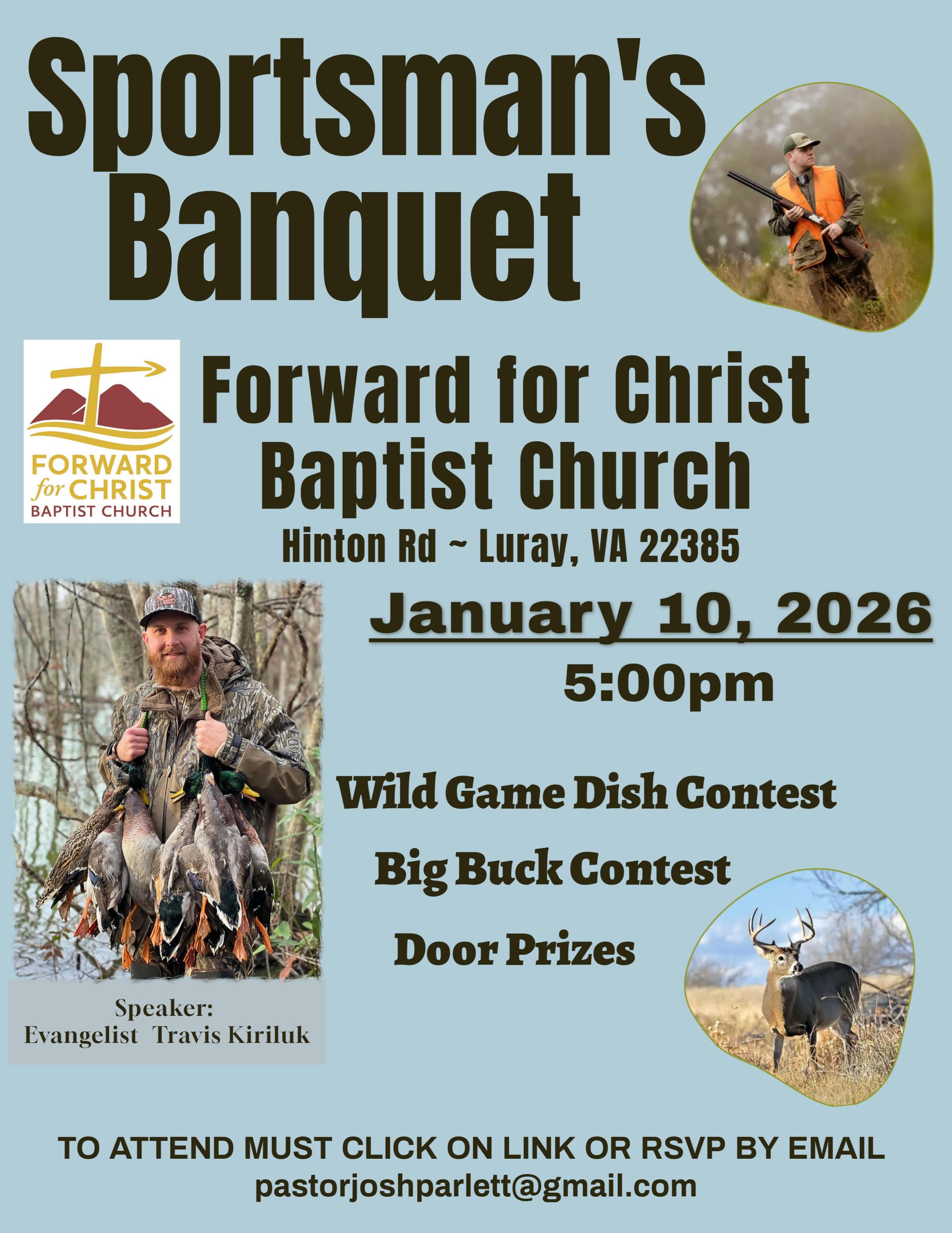 At Forward for Christ Baptist Church, we’re a local body of Bible-believing Christians committed to honoring Christ, reaching the lost, and building up the saints. Located just north of Luray near the fairgrounds, our church stands on the truth of God's Word and exists to glorify the Lord Jesus Christ in all we do. Whether you're looking for a church home, a place to grow in your faith, or answers about eternity, we invite you to visit, worship with us, and experience what it means to move forward for Christ.