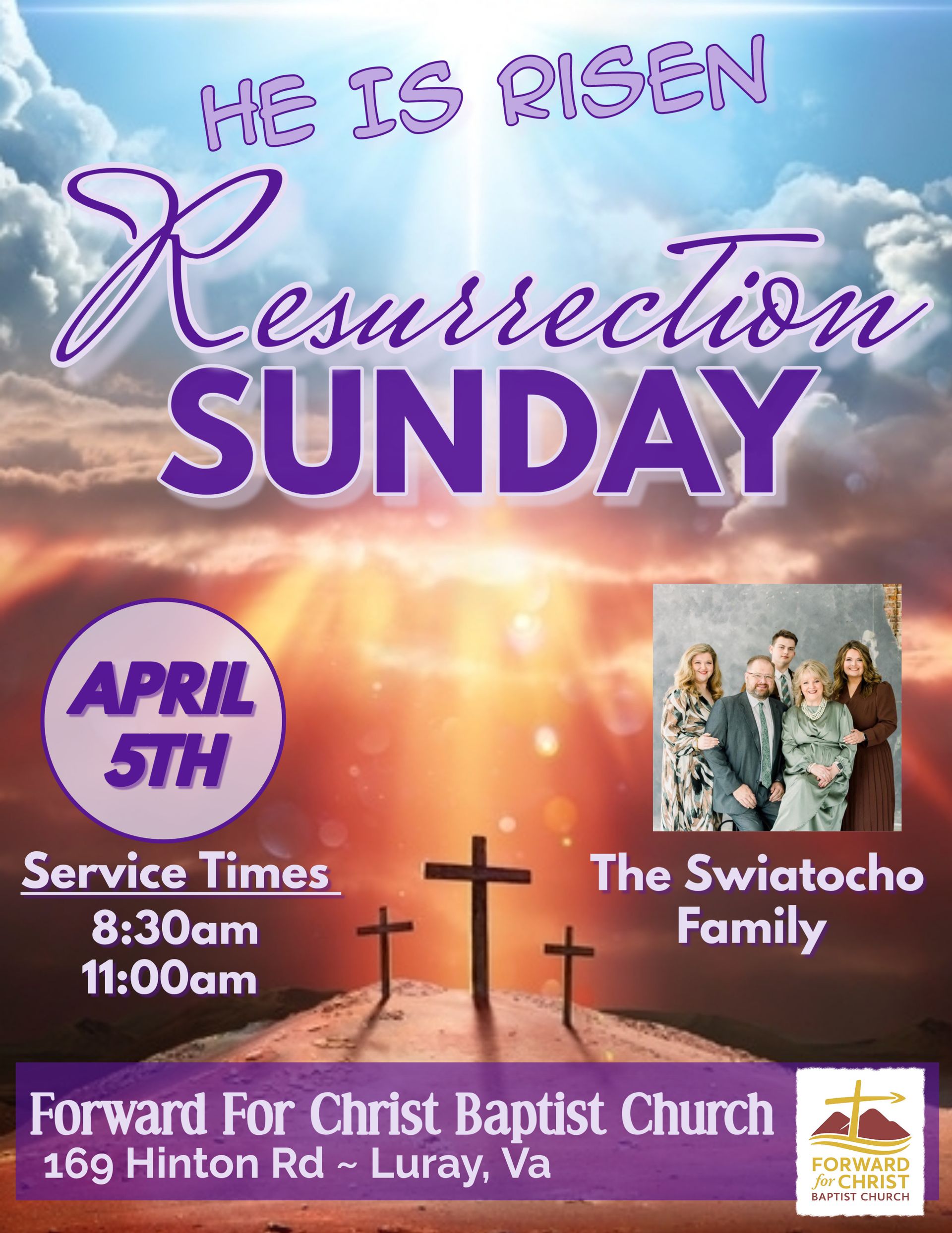 We would love to have you attend our Good Friday worship service on April 3. We have invited the Swiatocho family to come and minister to us with music and a message!